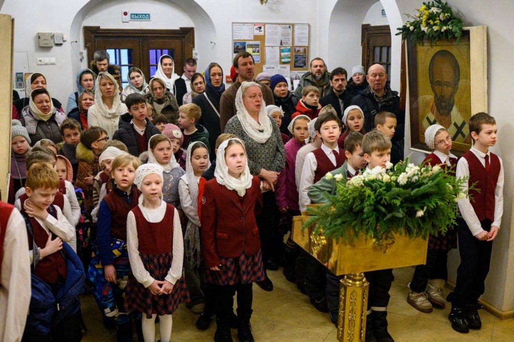 25 декабря 2025 года, в день памяти святителя Спиридона Тримифунтского, управляющий Северо-Восточным Московским викариатством митрополит Звенигородский Арсений совершил детскую Божественную литургию в храме Живоначальной Троицы Патриаршего подворья в усадьбе Свиблово.