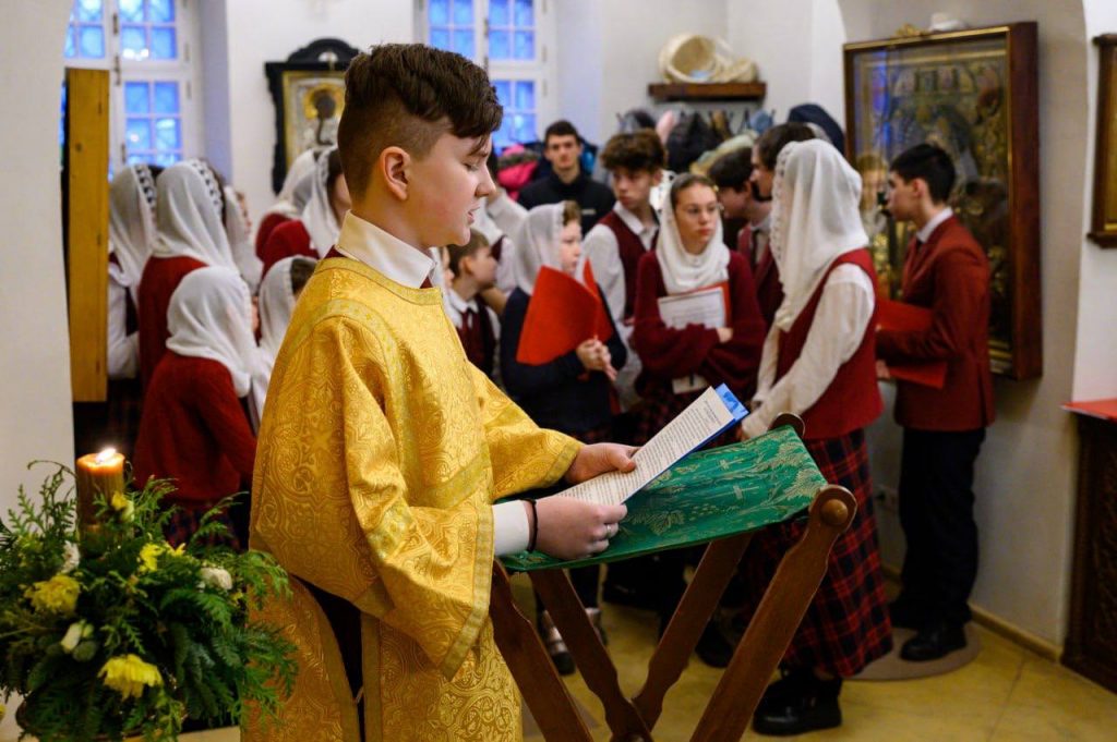 Ученики православной школы приняли активное участие в Божественной литургии — читали молитвы и Апостол на клиросе, мальчики помогали в алтаре.