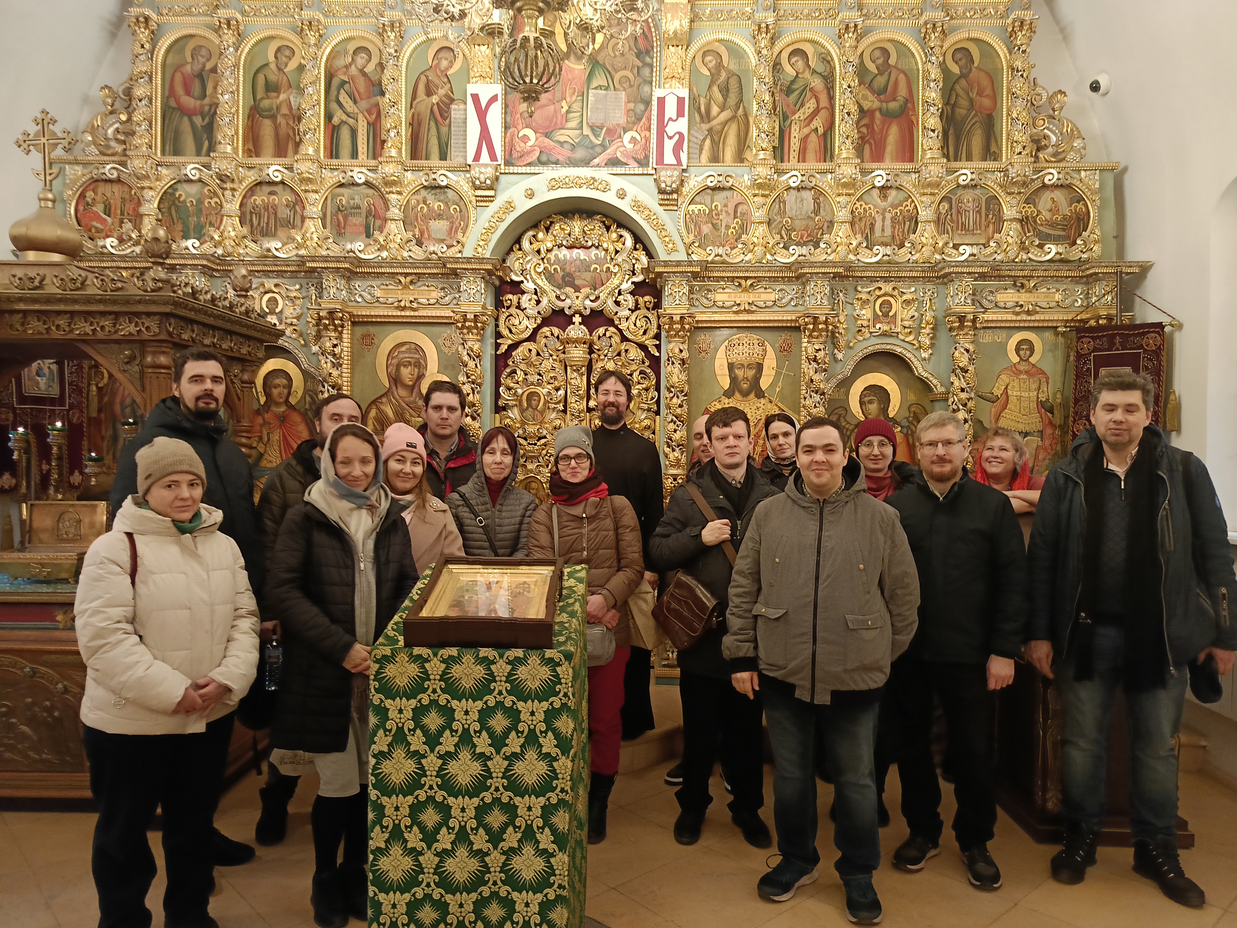 Экскурсию по храму Живоначальной Троицы в усадьбе Свиблово провел иерей Олег Елисеев, рассказав о святынях храма.