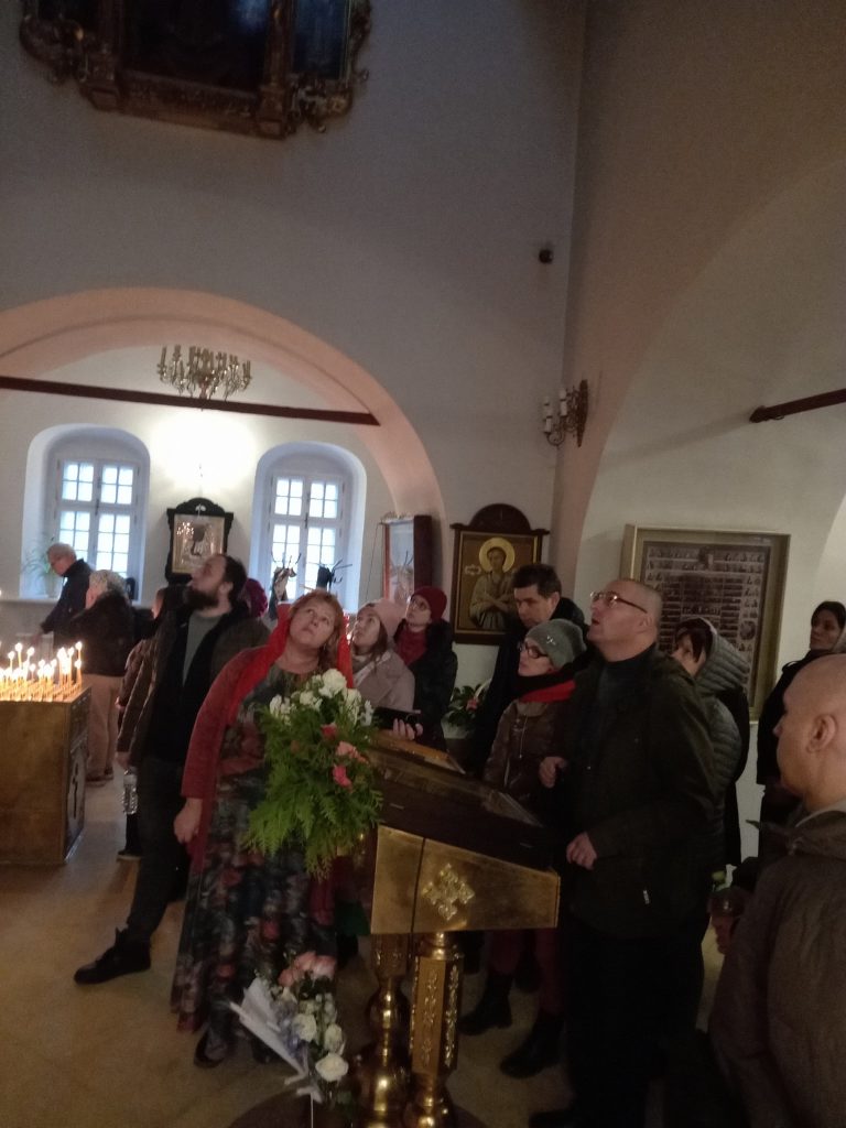 Затем молодежь поднялась на колокольню и посетила Музей колоколов и другие выставки. После чаепития ребята остались на гала-концерт, подготовленный и блистательно проведенный кандидатом искусствоведения, доцентом Романом Чистяковым. В программе участвовал молодежный фольклорный коллектив «Полынь трава» и много молодых исполнителей, что было участникам экскурсии особенно радостно.