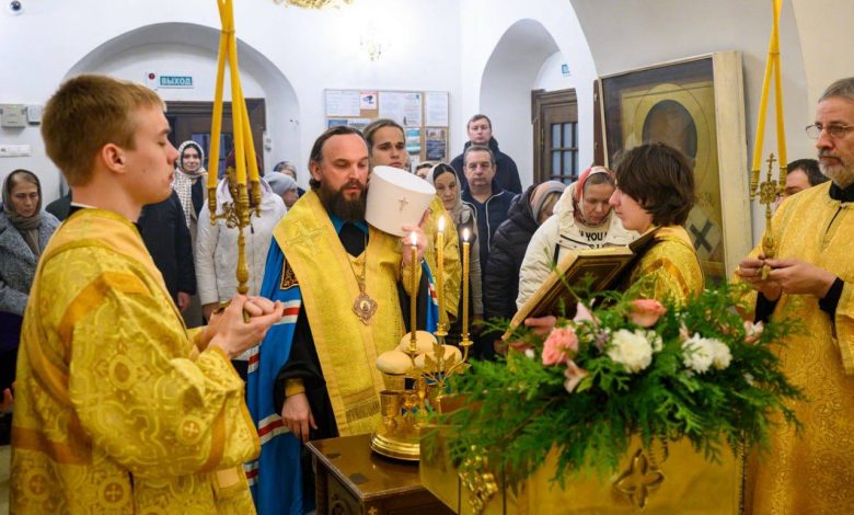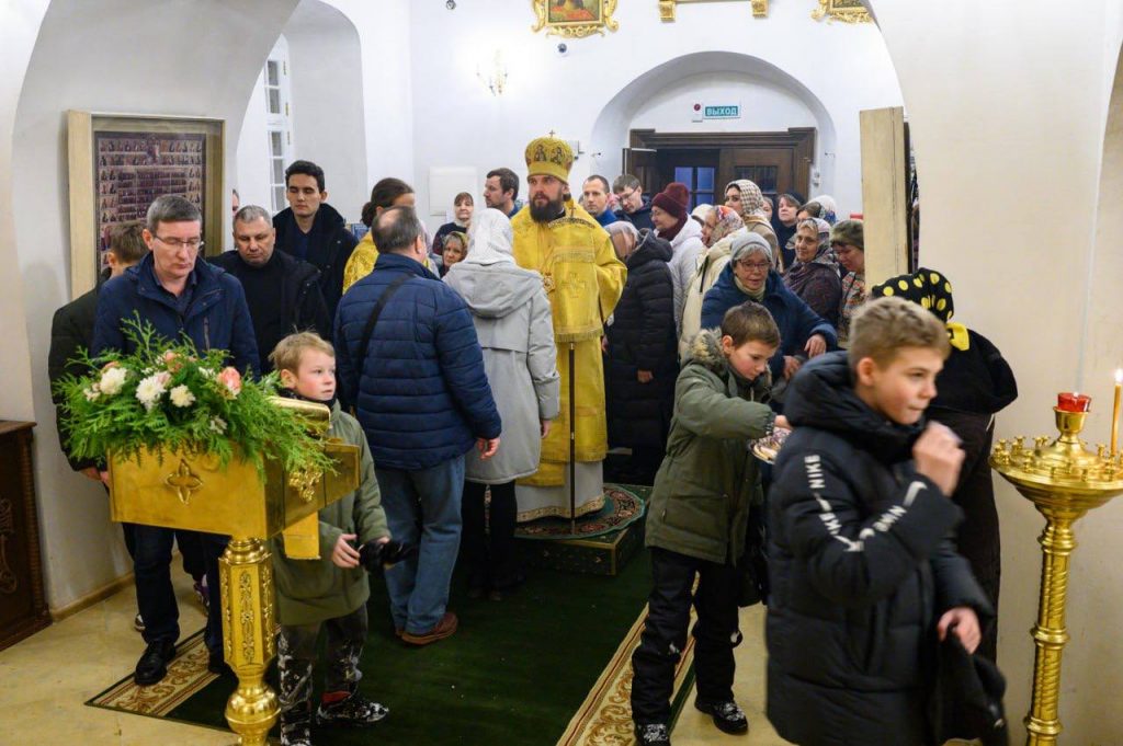 Его Высокопреосвященству сослужили клирики храма — протоиерей Сергий Рождественский, иерей Димитрий Горбик и иерей Олег Елисеев.