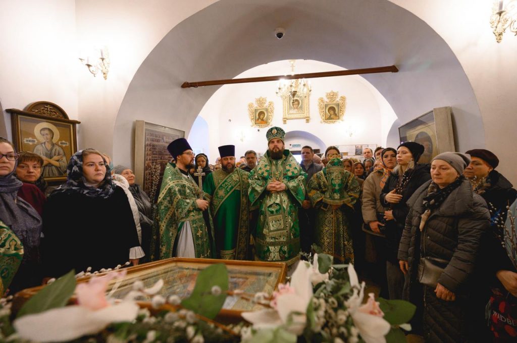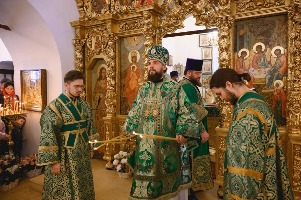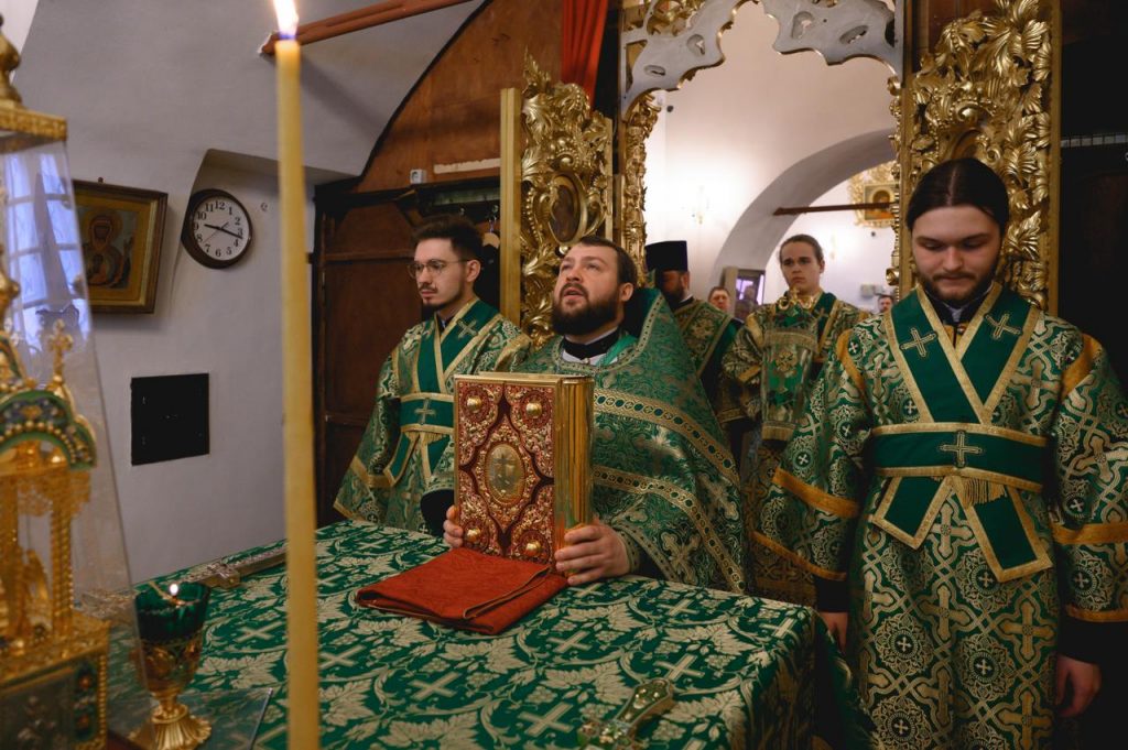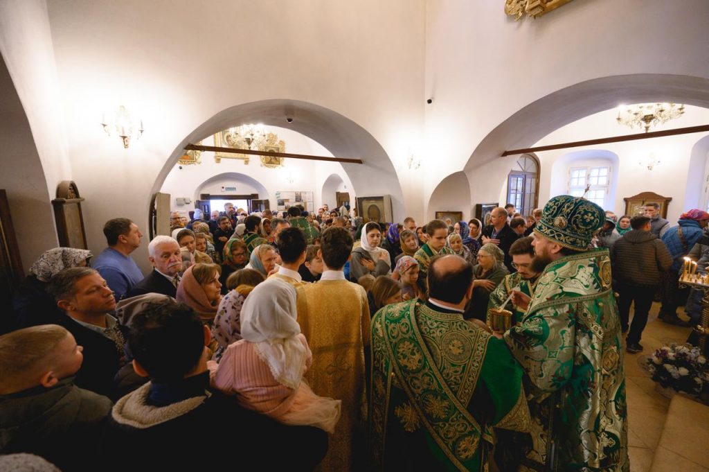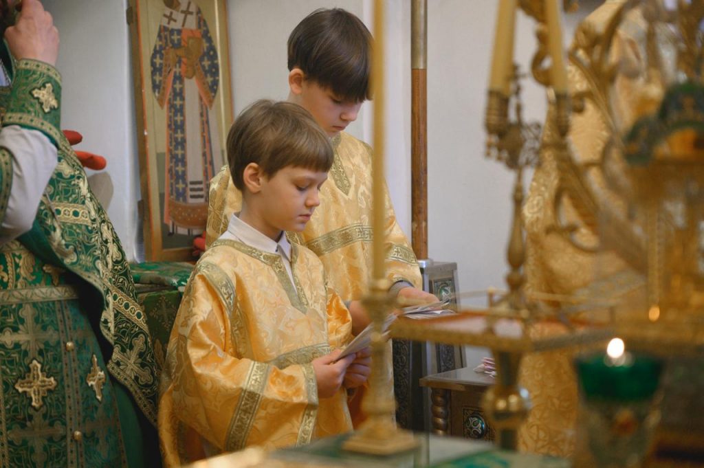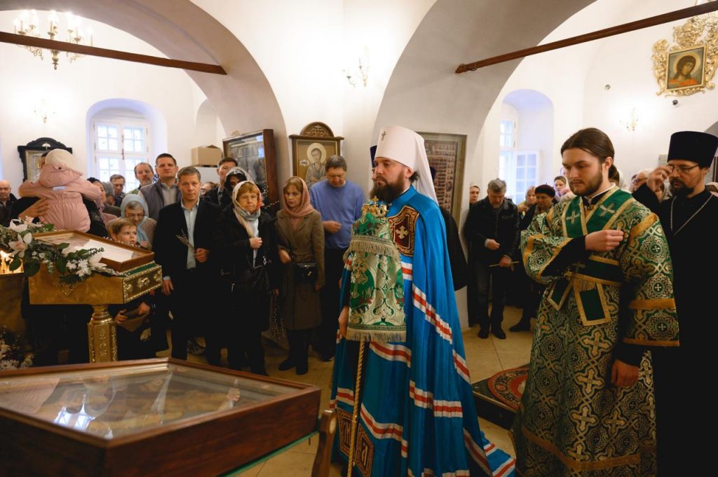 Его Высокопреосвященству сослужили клирики храма — протоиерей Сергий Рождественский, иерей Димитрий Горбик и иерей Олег Елисеев, а также клирик храма Тихвинской иконы Божией Матери, Патриаршего подворья в Алексеевском, протодиакон Василий Куфлик.
