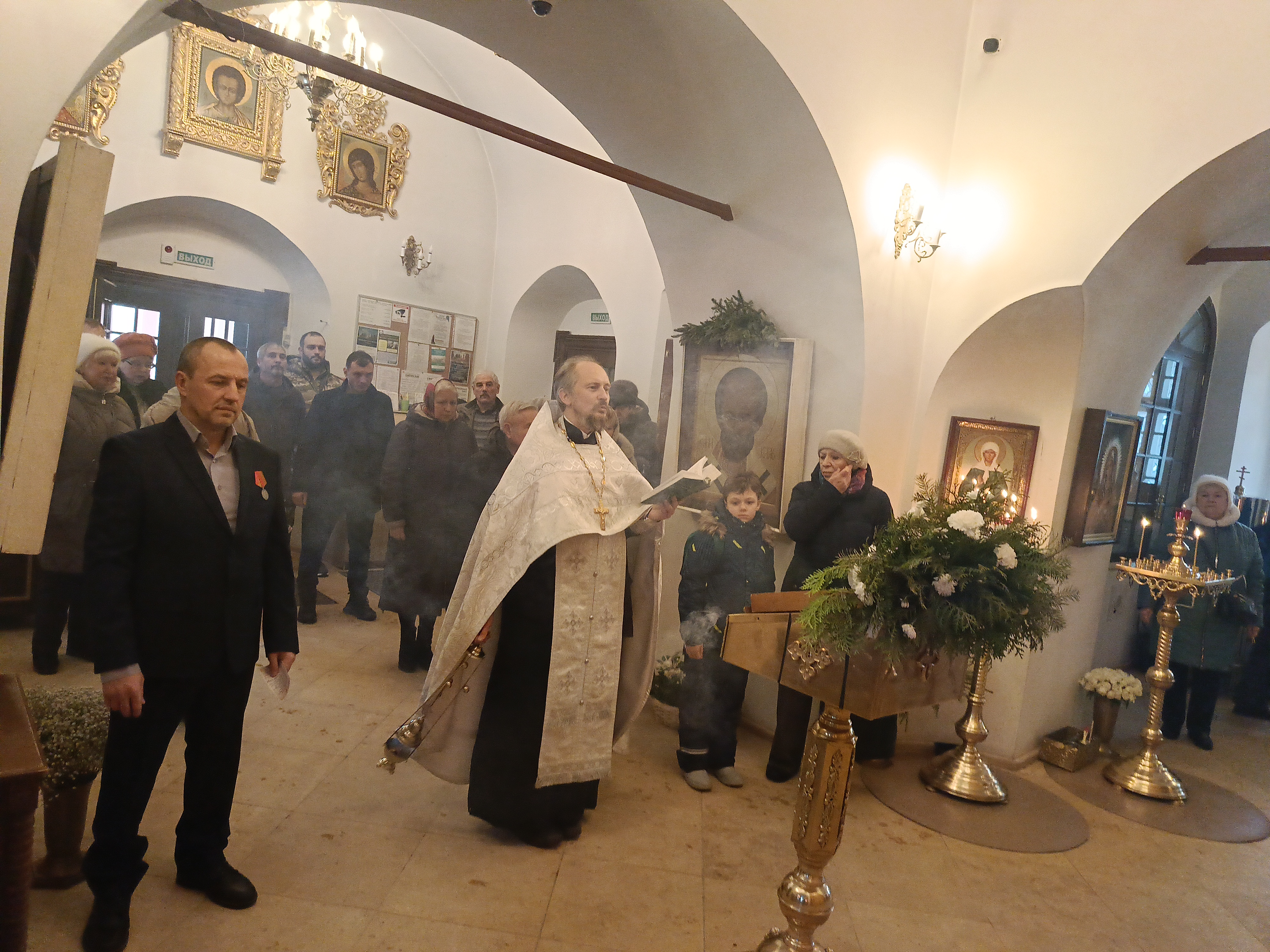 В храме был отслужен молебен о воинах. Отец Константин и все присутствующие, просили о защите, укреплении, спасении и здравии военнослужащих, находящихся на поле брани, в плену, раненых или пропавших без вести, обращались к Богородице, святым покровителям с просьбой о даровании мужества, избавления от врагов и скорбей, а также о мире Отечеству.