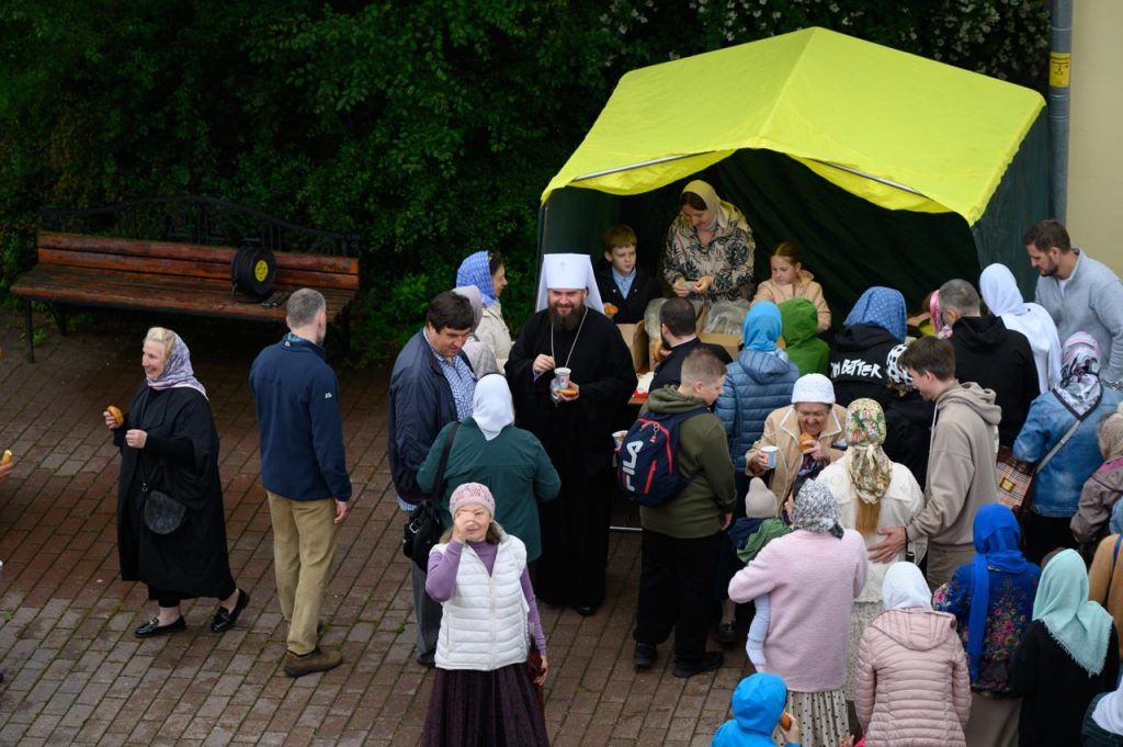 Традиционно после богослужения всех прихожан во дворе храма ждал чай с пирогами.