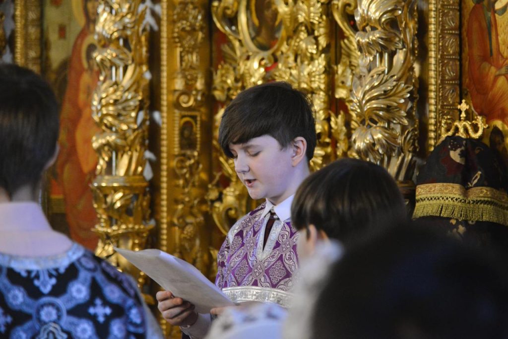 Перед причастием ученик 5 «А» класса Николай Дмитриев прочитал повествование о Страстной седмице, каждый день которой посвящен определенным событиям последних дней земной жизни Иисуса Христа.