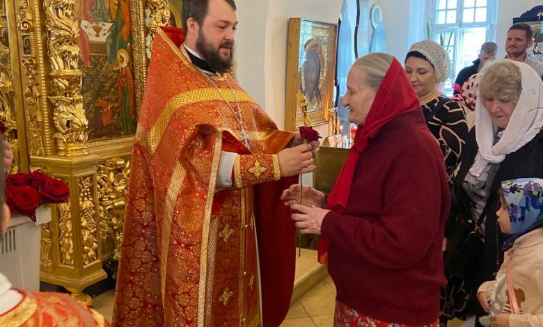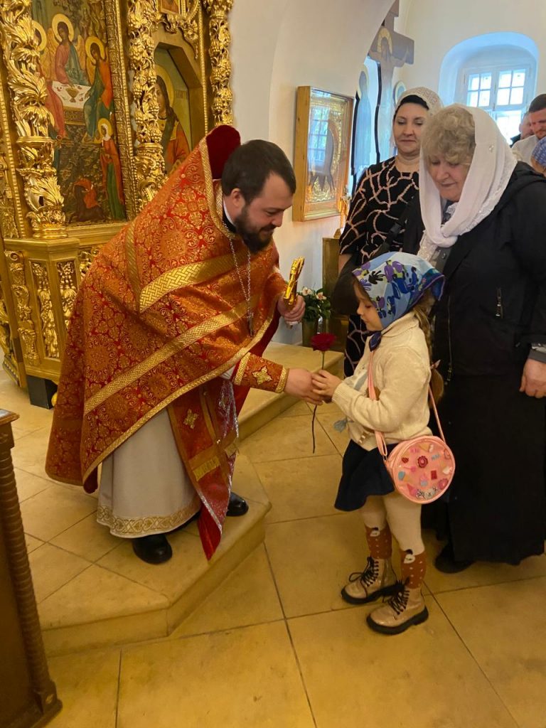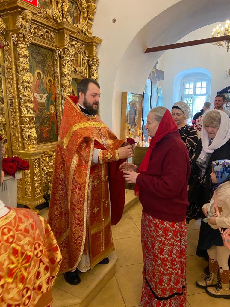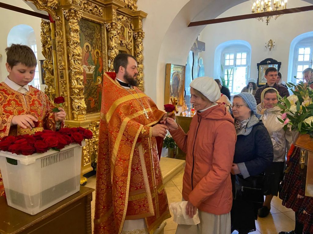 По окончании богослужения отец Димитрий произнёс проповедь и тепло поздравил прихожанок с праздником. По благословению настоятеля храма — управляющего Северо-Восточным Московским викариатством митрополита Звенигородского Арсения — все женщины, бабушки, девушки и девочки получили цветы.