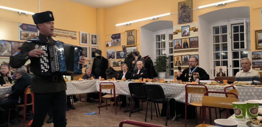 В «Георгиевском зале» после общей молитвой началось мероприятие и продолжилось «Гимном Свиблово» в исполнении авторов поэта Юрия Говердовского и композитора Сергея Волкова.
