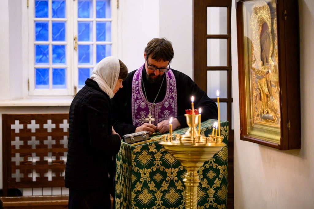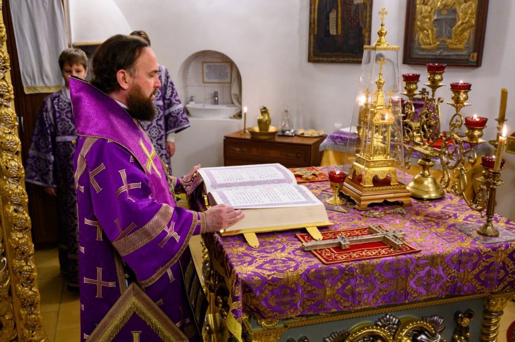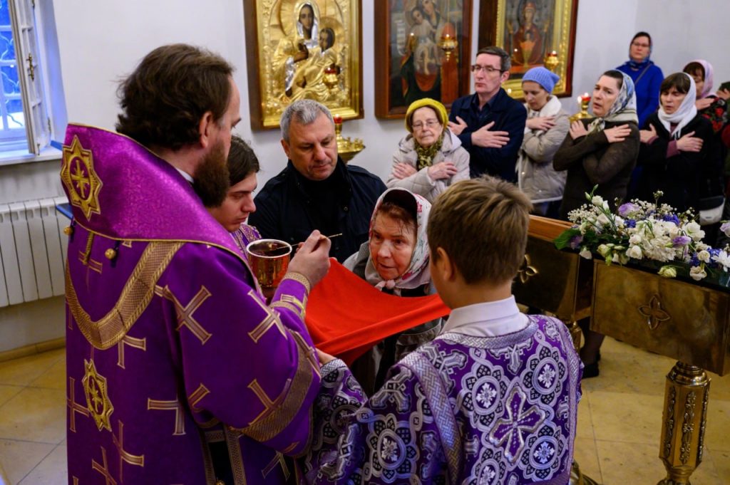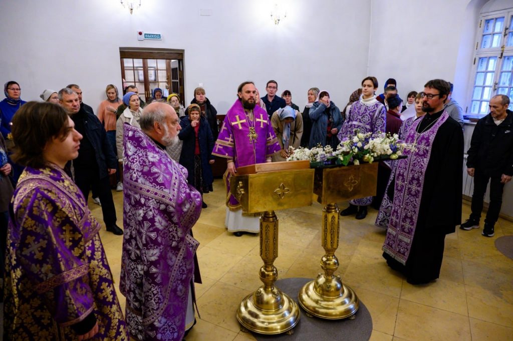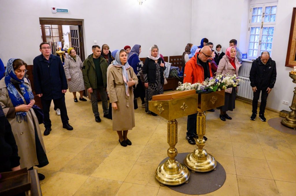 Его Высокопреосвященству сослужил клирик храма — протоиерей Сергий Рождественский. Богослужебные песнопения исполнил народный хор храма под управлением Андрея Сидорова.