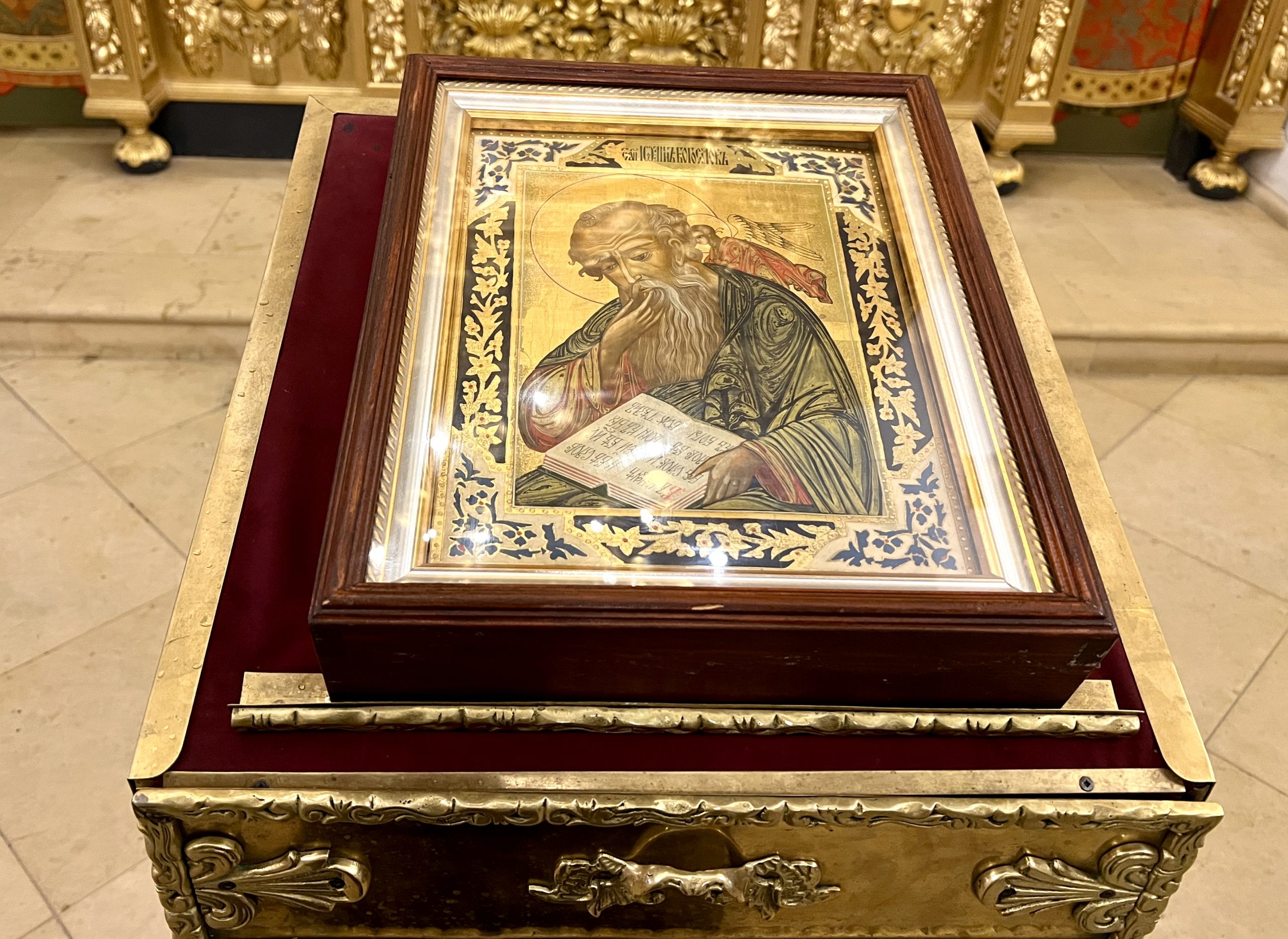 По заамвонной молитве духовенство совершило славление у иконы праздника и владыка вознес молитву к апостолу Иоанну Богослову.