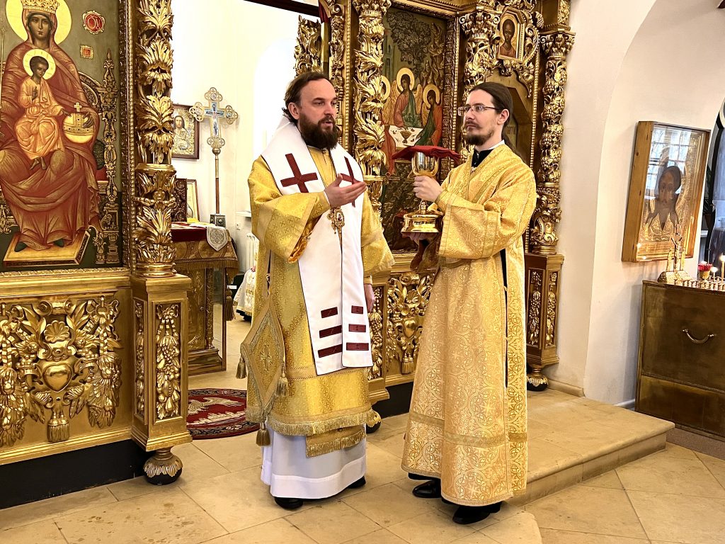 Его Высокопреосвященству сослужил клирик храма — протоиерей Сергий Рождественский. Литургия сопровождалась пением хора храма под управлением Андрея Сидорова.