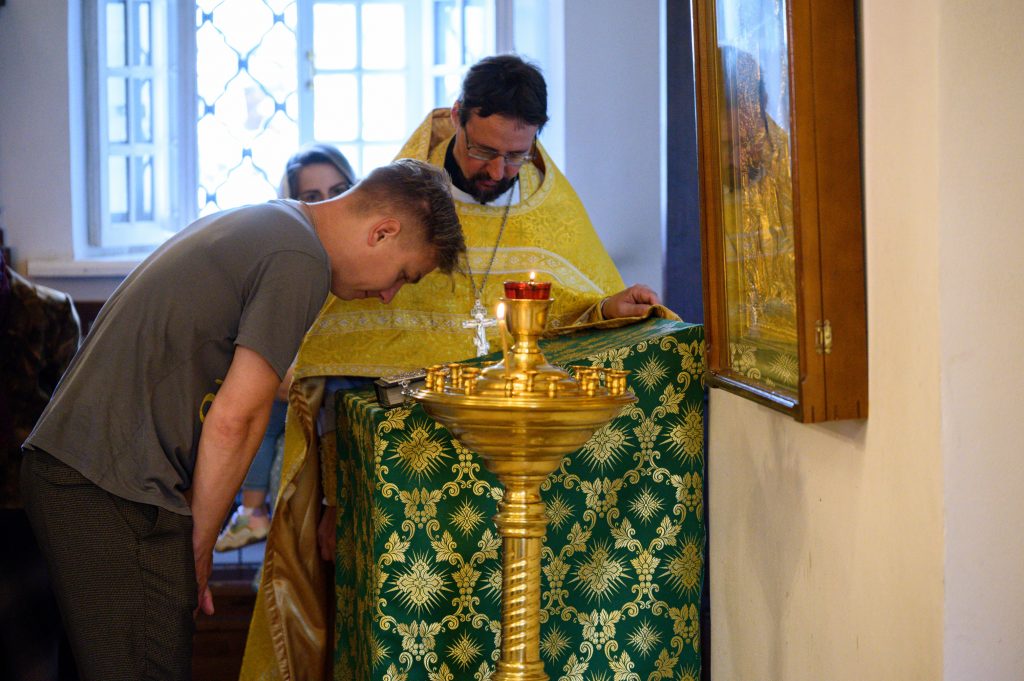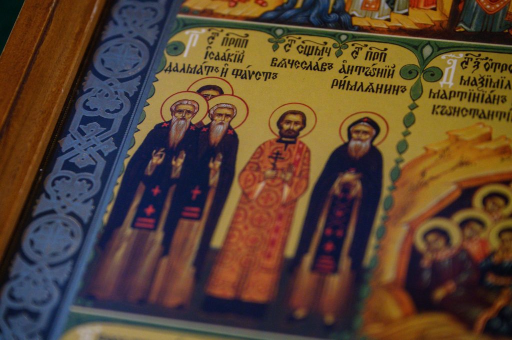 По отпусте Литургии владыка совершил славление преподобному Антонию Римлянину, Новгородскому Чудотворцу.