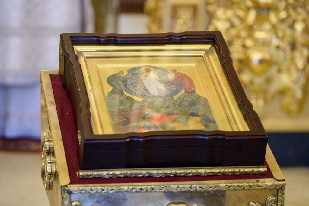 По отпусте Литургии владыка совершил славление праздника Преображения Господня.