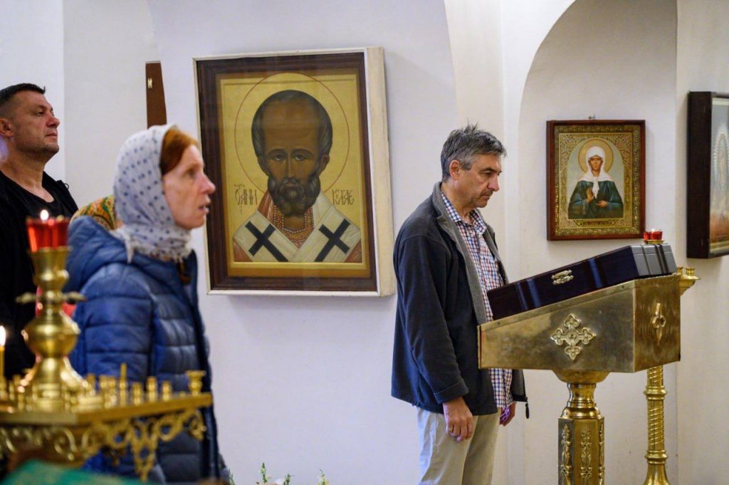 Его Высокопреосвященству сослужил клирик храма — иерей Димитрий Горбик. Богослужебные песнопения исполнил хор храма под управлением Марии Герего.