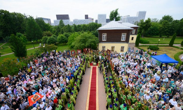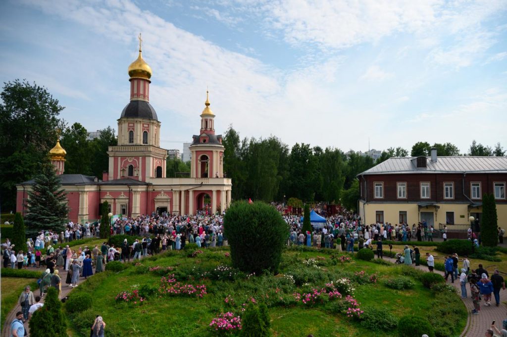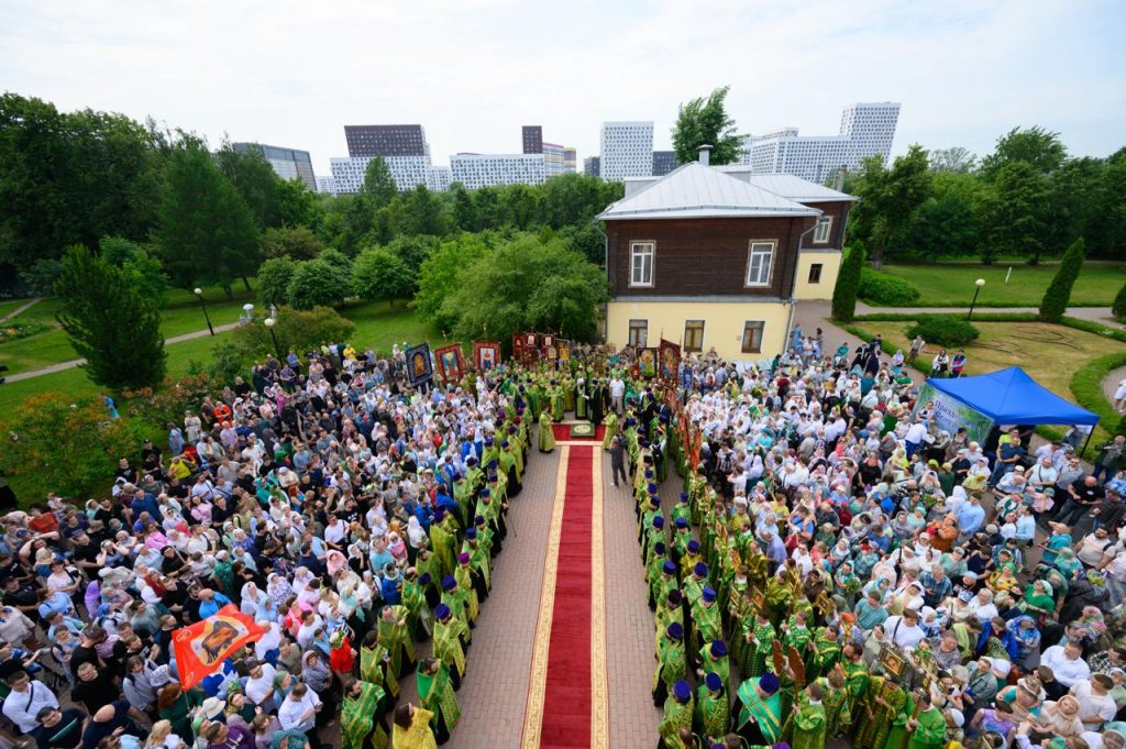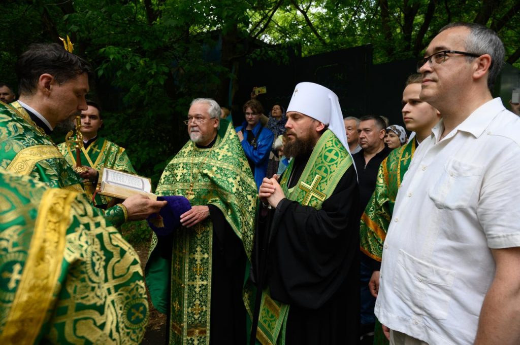 Торжественный молебен Святой Троице в усадьбе Свиблово возглавил владыка Арсений.