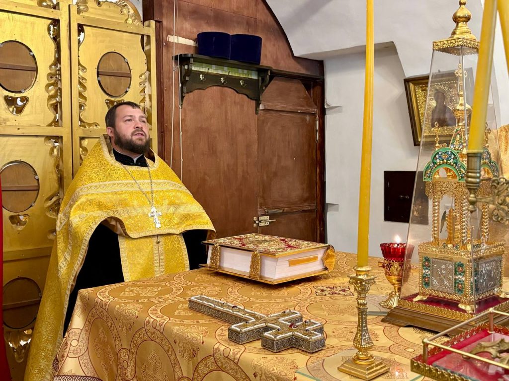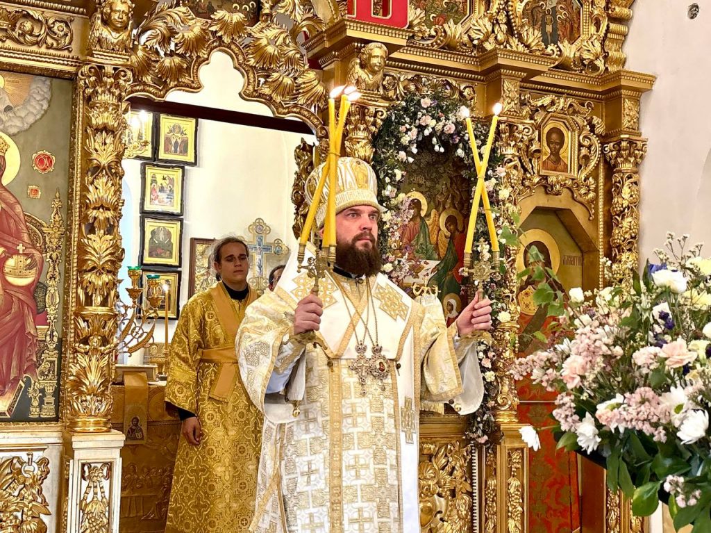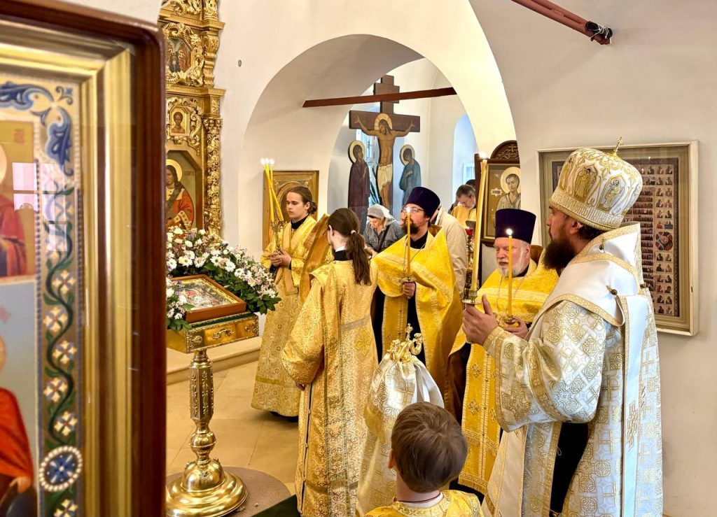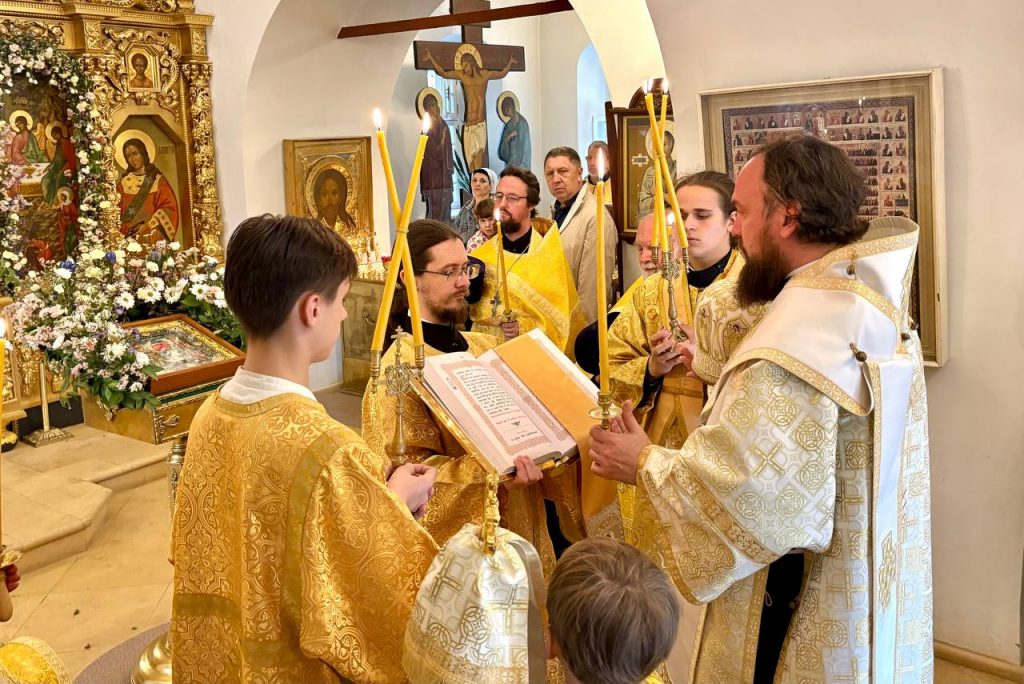 Его Высокопреосвященству сослужили клирики храма — протоиерей Сергий Рождественский, иерей Димитрий Горбик и иерей Олег Елисеев.