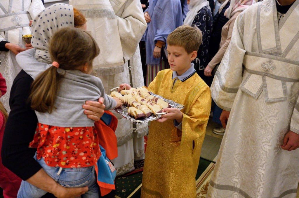 Его Высокопреосвященству сослужили клирики храма — иерей Димитрий Горбик и иерей Олег Елисеев. Богослужебные песнопения исполнил хор храма под управлением Марии Герего.