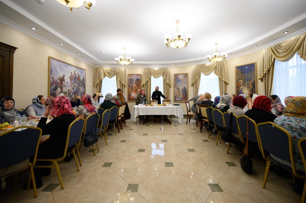 Затем за совместным чаепитием гости смогли пообщаться с митрополитом Арсением.
