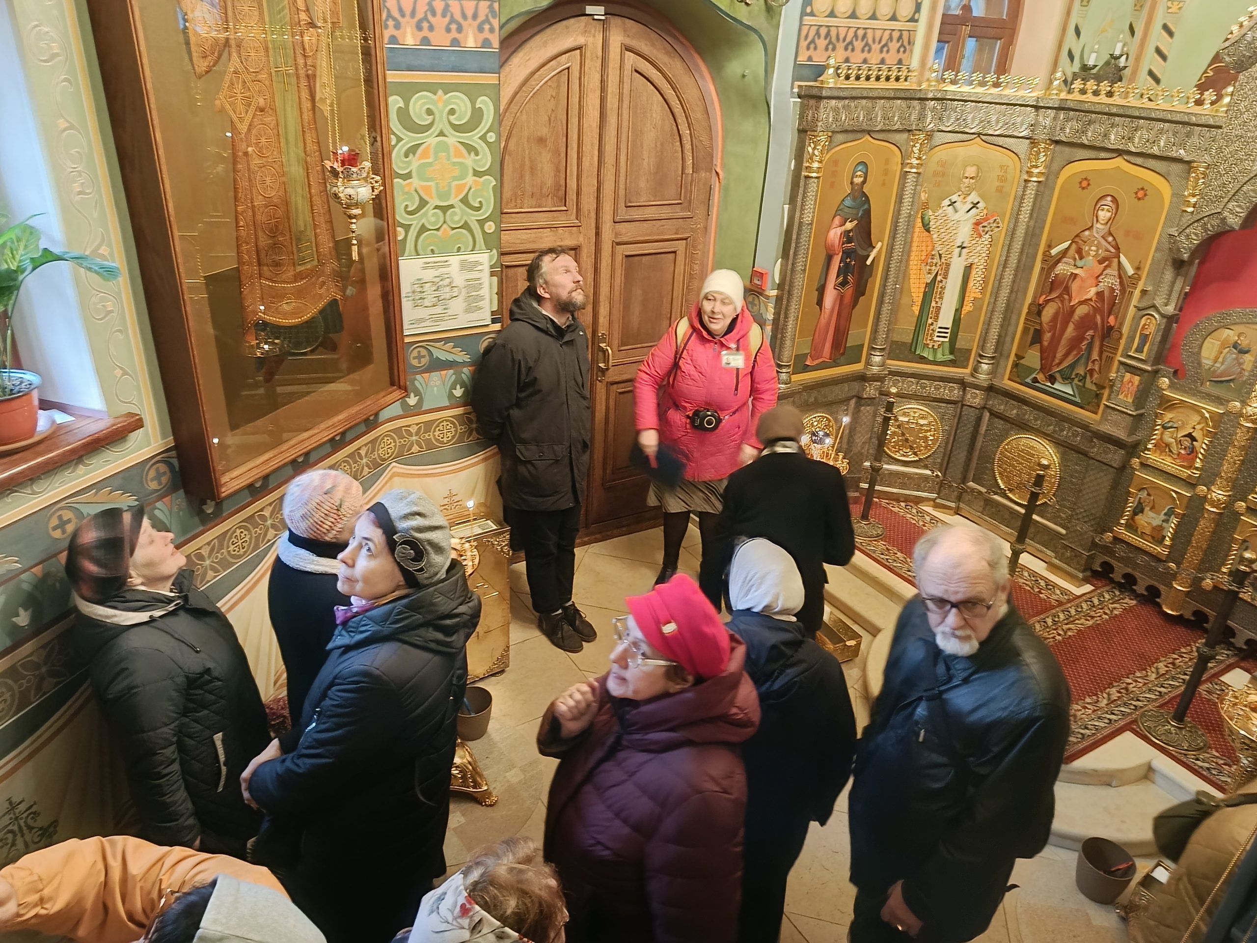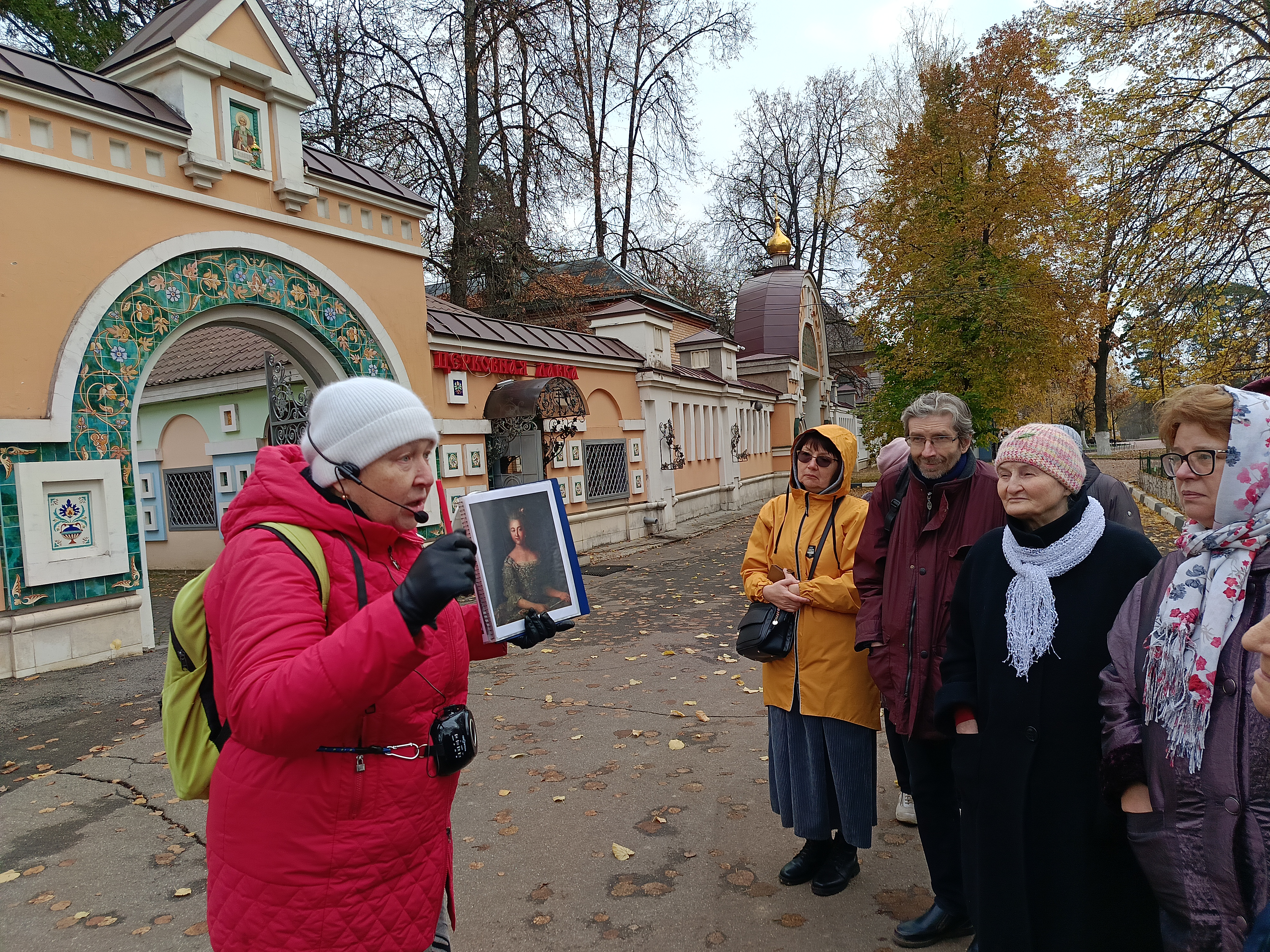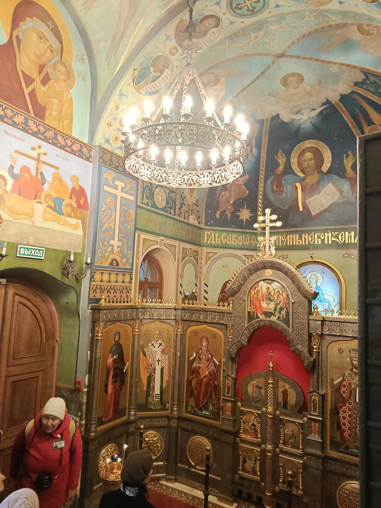 На территории подворья группу встретила местный экскурсовод Галина Владимировна Федорова, которая более подробно рассказала об архитектуре храма Спаса Преображения и храма Святого благоверного великого князя Игоря Черниговского. Внутри храмов она объяснила содержание фресок, художественные особенности и указала на особо почитаемые Святыни.