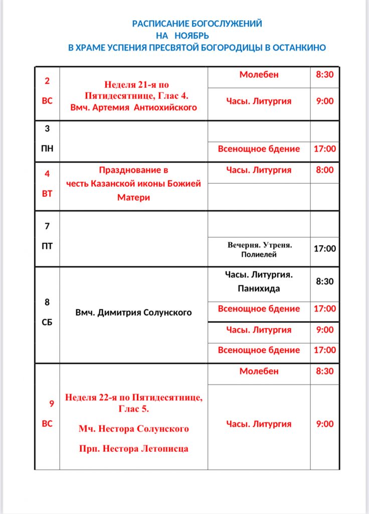 Расписание концертов в усадьбе Свиблово. Ноябрь